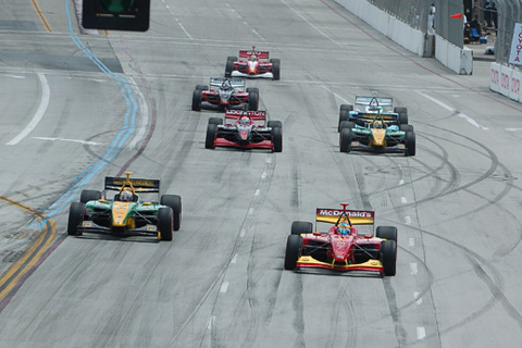 Pole Advantage: Sebastien Bourdais maintains his inside spot on Will Power as the field gets the green flag.