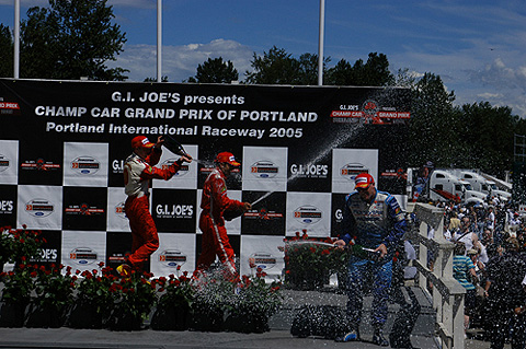 Shorty Pops A Long One: Cristiano da Matta hasn't forgotten how to fire off the champagne bottle.