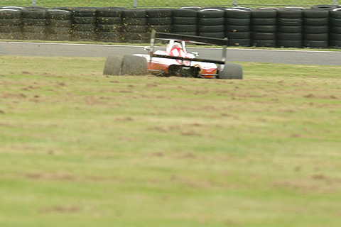 Long Way Off: Duncan Ende is buried in the grass a long ways from the track.