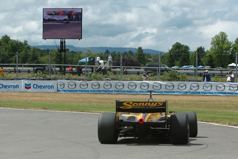 Fumes: Just after passing Bruno Junqueira, Katherine Legge comes to a halt out of fuel with just a few laps remaining.