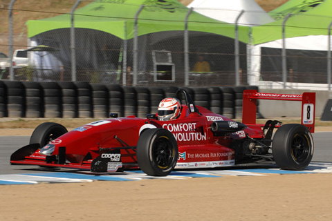 Sage Karam: Running up on the curbing at Laguna Seca in USF2000.